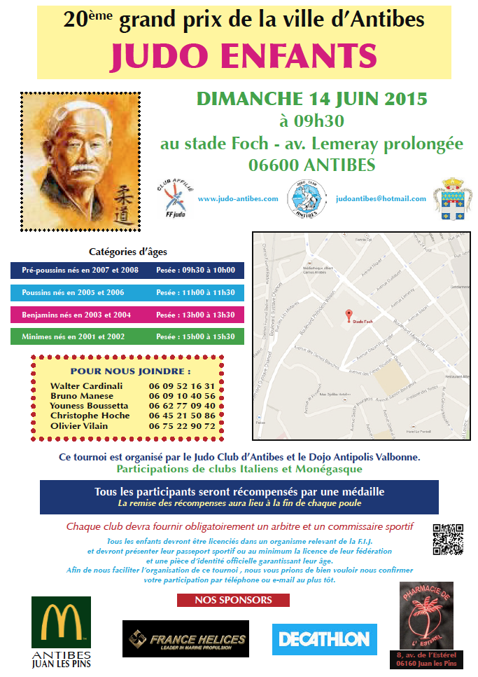 Le 14 juin c’est le TIJA . ced Posted on 17 mai 2015 Publié dans competitions, événements No Comments Le 14 juin 2015 aura lieu le tournoi du judo club d’antibes. Retrouvez toutes les informations ci-dessous.